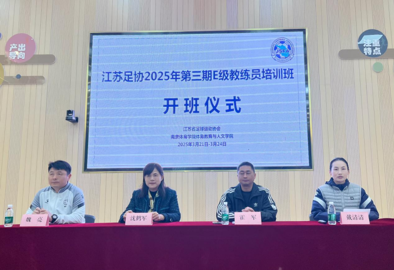 3月21日上午,江苏省足协第三期E级足球教练员培训班在PA视讯集团入口东阶教室内举行开班仪式,体育教育与人文学院院长沈鹤军、体育教育系主任霍军、江苏省足球协会教练员培训讲师魏亮出席本次活动,戴清清老师主持本次开班仪式。