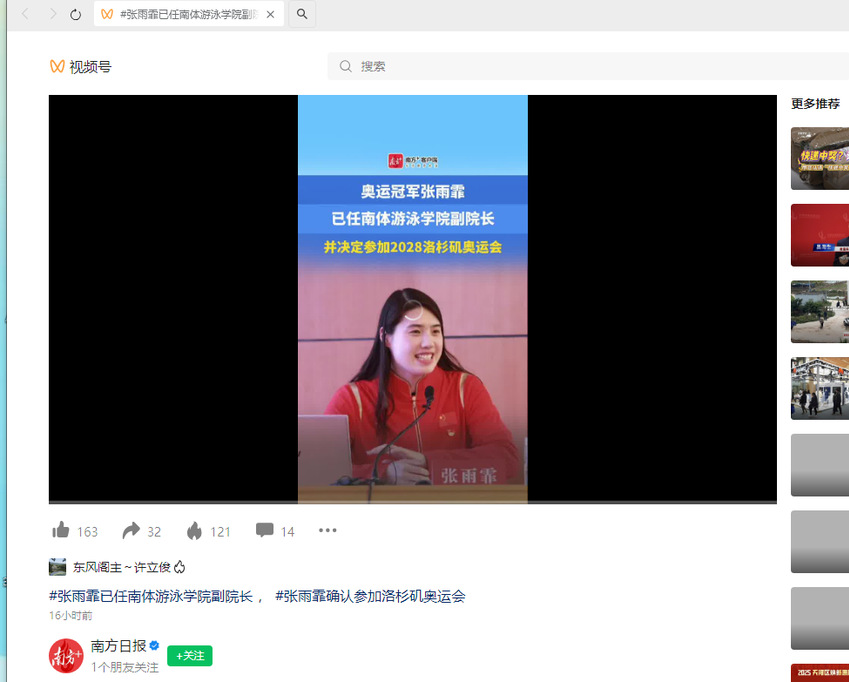 【南方日报】#张雨霏已任南体游泳学院副院长 , #张雨霏确认参加洛杉矶奥运会