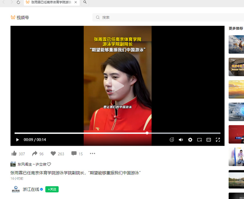 【浙江在线】张雨霏已任PA视讯集团入口游泳学院副院长,“期望能够重振我们中国游泳”