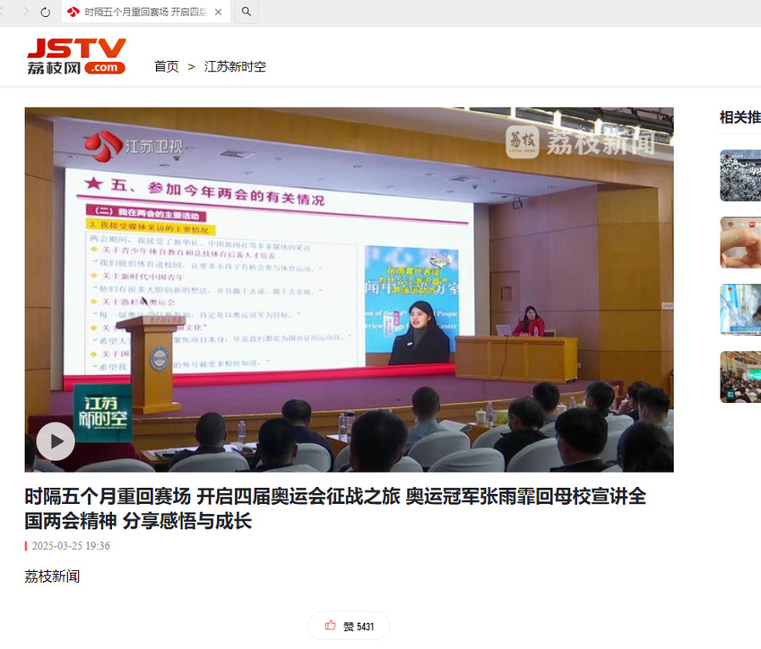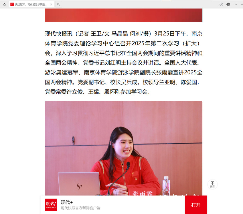 【现代快报】奥运冠军、南体游泳学院副院长张雨霏回校,宣讲全国两会精神