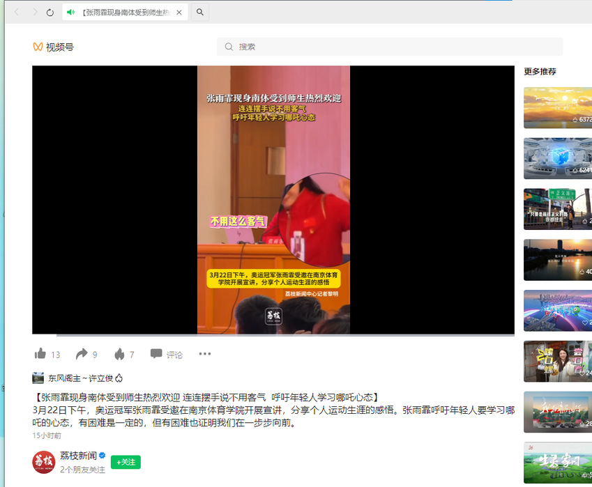 【荔枝新闻】【张雨霏现身南体受到师生热烈欢迎 连连摆手说不用客气 呼吁年轻人学习哪吒心态】
