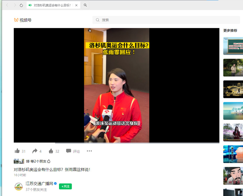 【江苏交通广播网】对洛杉矶奥运会有什么目标?张雨霏这样说!
