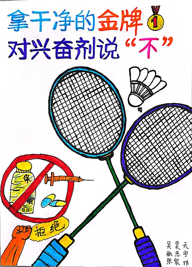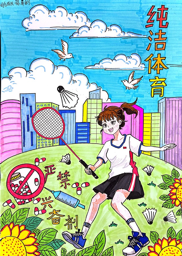 乒乓球队和羽毛球队的运动员紧密围绕“逐梦十五运,共赴纯洁体育之约”这一主题,踊跃结合项目特色展开创作,提交了很多充满新意的作品,并且通过创作很好的树立了坚决抵制兴奋剂的决心和勇气,展示了乒羽运动员的良好体育精神风貌。经过队伍初筛和学院复评,于3月27日共评选出优秀作品8幅(详见附图),后续将推荐至学校统一报送省体育局参加全省的角逐。