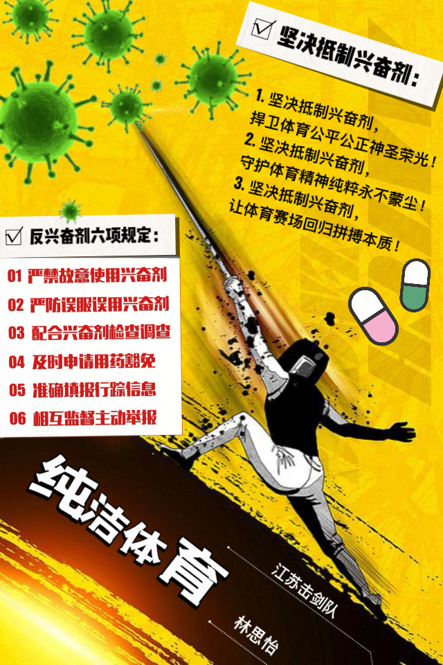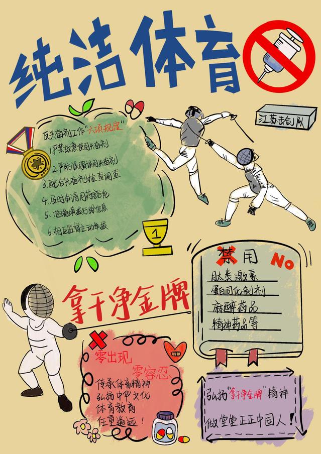 根据省体育局《关于开展2025年江苏省“纯洁体育宣传月”系列活动—宣传海报设计大赛和征集形象标识活动的通知》精神,结合学校相关部署安排,击剑学院认真落实文件要求,积极响应、广泛宣传,组织运动员将宣传反兴奋剂知识和发挥创作热情结合起来,踊跃参加海报设计大赛,全面提高运动员坚决抵制兴奋剂的自觉性。