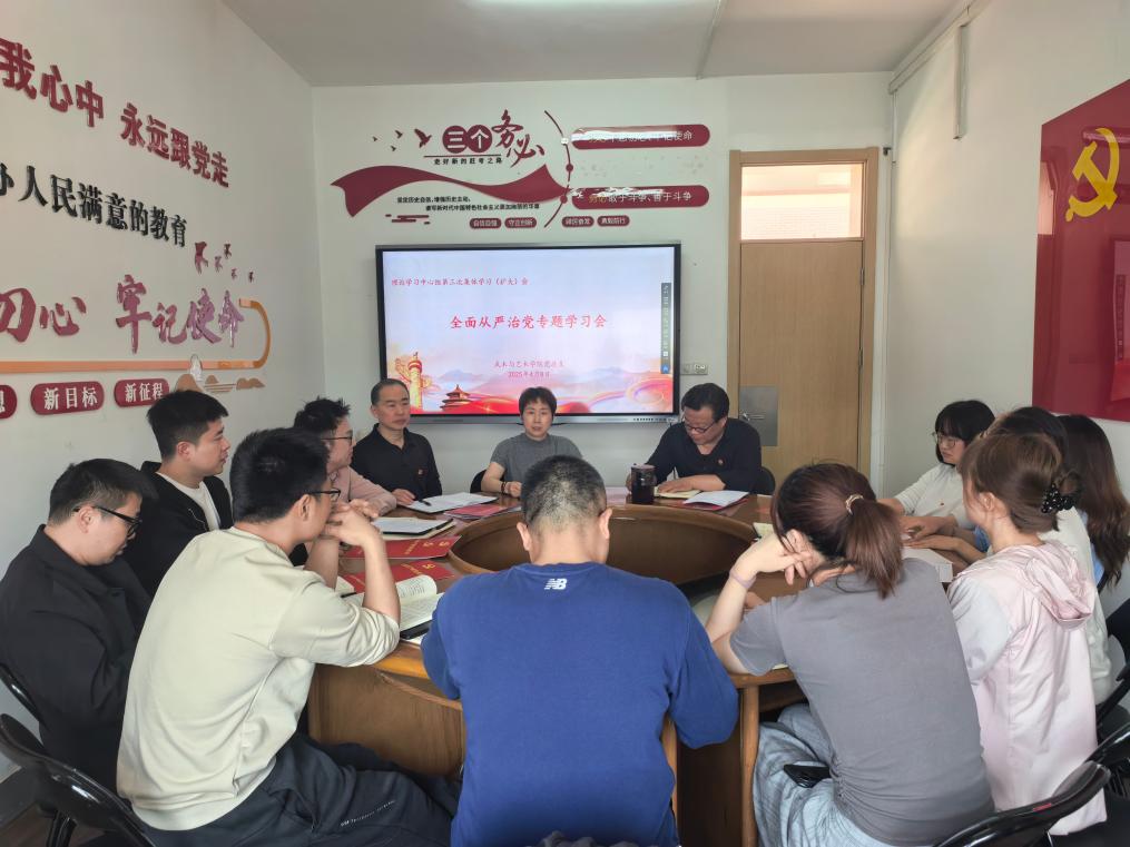 4月8日,武术与艺术学院党总支理论学习中心组召开全面从严治党专题学习(扩大)会。会议由学院党总支书记叶瑛主持,理论学习中心组全体成员、各支部委员及各系副主任参加。