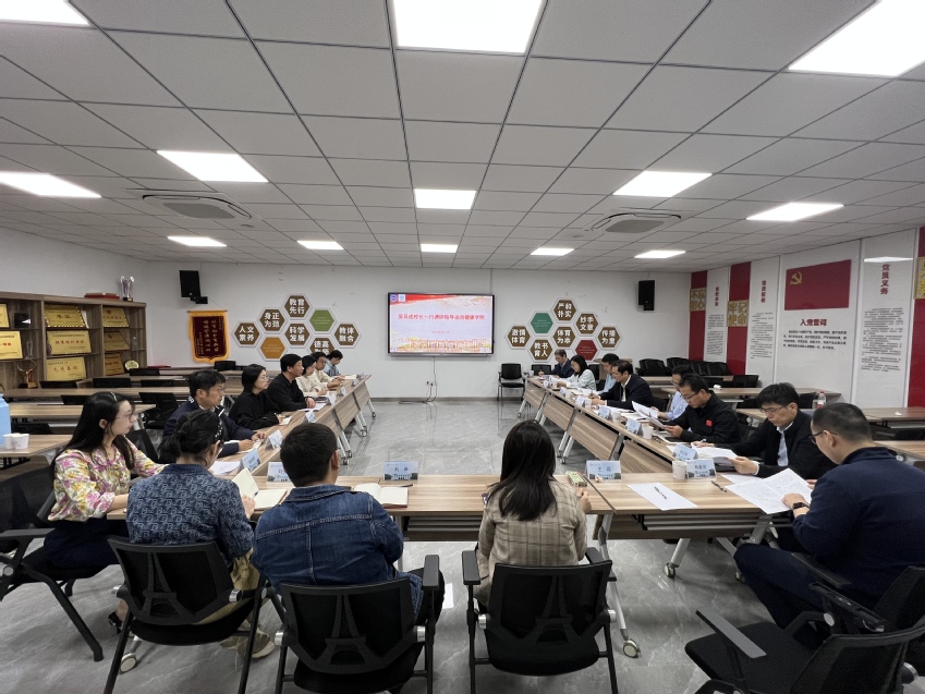 汤强围绕运动健康学院基本架构、专业布局、师资队伍、教学科研等方面展开汇报,并客观分析了学院办学发展中存在的问题和面临的挑战。党总支副书记阚妮妮汇报了学院党建工作和学生管理模式与成效。