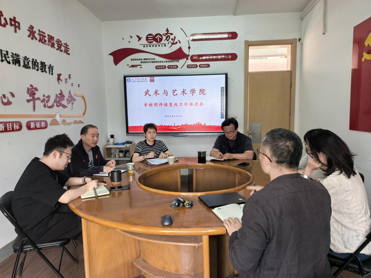 为扎实推进本科教育教学审核评估准备工作,确保学院各项整改任务落实到位,武术与艺术学院于4月17日在教学实验楼2号楼308会议室召开审核预评估整改工作推进会。学院领导班子成员、系主任及教学秘书参加会议,会议由党总支书记叶瑛主持。