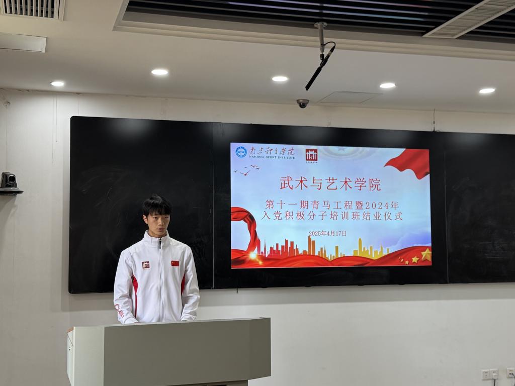 为全面贯彻落实习近平总书记关于青年工作的重要思想,持续推进学校青年马克思主义者培养工程建设,发挥学院分团委为党育人政治功能,4月17日下午,武术与艺术学院在图书馆第二报告厅举办第十一期“青年马克思主义者培养工程”暨入党积极分子培训班结业仪式。学院党总支书记叶瑛、副书记杜家俊,辅导员马高曼、陆丹以及本期培训班全体学员参加。结业仪式由马高曼主持。