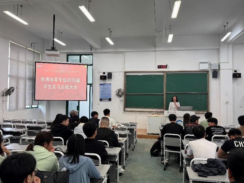 4月18日上午,体育产业与休闲学院休闲体育系在仙林校区C301召开休闲体育专业2025届学生实习总结大会,会议由系副主任崔媛媛主持,系主任朱金宁参会指导,休闲体育专业2025届全体学生参加。