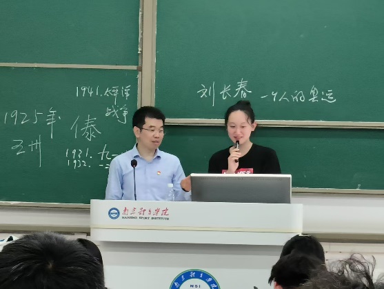 课堂上,兰亚明以里约奥运会中国女排夺冠登上领奖台、升中华人民共和国国旗、奏中华人民共和国国歌的影像为切入点,借助女排姑娘们在赛场上顽强拼搏、为国争光的精彩瞬间,吸引了全体学生的注意力,让学生们热切期待了解国歌——《义勇军进行曲》背后的故事。随后,他详细介绍了《义勇军进行曲》创作者田汉、聂耳的生平事迹,两人怀揣着对祖国深深的热爱,在国家危难之际,用饱含激情的笔触和激昂的音符,创作出了这曲激励人心的现代革命音乐。兰亚明以《义勇军进行曲》诞生、传播、确定为国歌的历程为线索,讲述了“五卅运动”“九·一八事变”“一·二八事变”“长城抗战”“太平洋战争”“世界反法西斯战争”等重大历史事件,带领大学生们回顾了中国共产党领导中国人民抗击日本帝国主义等外来侵略的波澜壮阔、可歌可泣的奋斗历程。深入讲解了《义勇军进行曲》创作过程中的艰难曲折以及当时的社会背景,使学生们深刻体会到《义勇军进行曲》的诞生不仅仅是艺术创作,更是民族精神的凝聚和呐喊。同时,他从文学、音乐两个角度阐述了《义勇军进行曲》的美学价值与艺术魅力,特别是深刻分析了《义勇军进行曲》所蕴含的爱国主义、居安思危、不怕牺牲的丰富精神价值。最后,兰亚明针对新时代大学生如何发扬和践行国歌的精神内涵提出了明确建议,寄语大学生进一步筑牢跟党走中国特色社会主义道路的远大理想信念,坚定“四个自信”,发奋学习,增长才干,提高本领,用实际行动报效祖国和人民,在实现中华民族伟大复兴中国梦的火热实践中实现人生价值和理想。