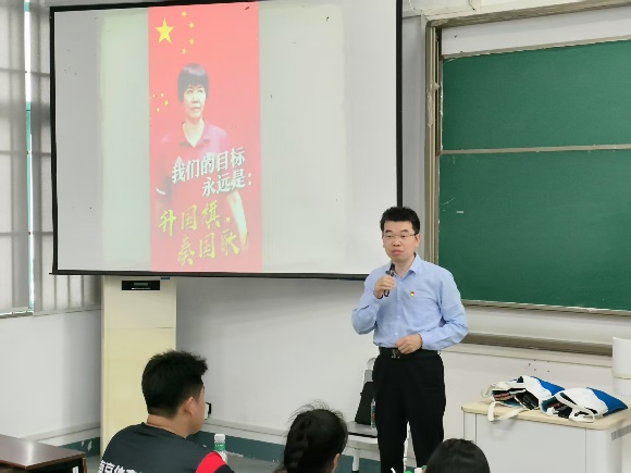 4月30日下午,校党委副书记兰亚明走进运动训练23级(1)班、(2)班的思政课堂,为学生们带来了一堂内容丰富、别开生面的专题思政课——“国歌的故事”。