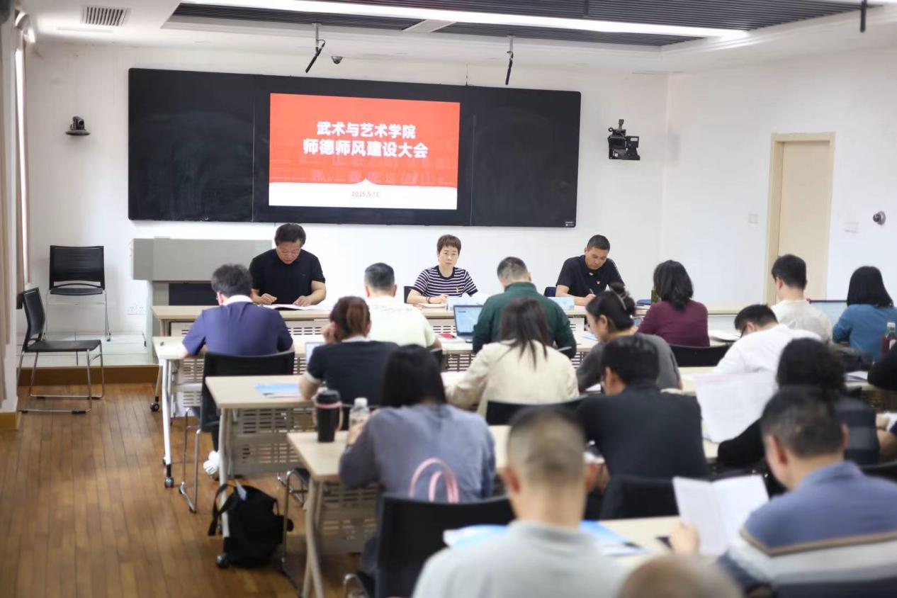 为深入学习贯彻习近平总书记在全国教育大会上的重要讲话精神,落实立德树人根本任务,5月13日下午,武术与艺术学院在图书馆第二报告厅召开2025年师德师风建设工作专题会议。会议由党总支副书记、院长张明主持,全体教职工参加会议。