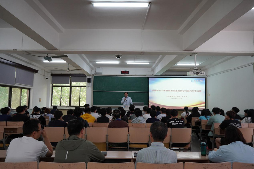 课上,吴兵成提出,深刻领会习近平总书记关于体育重要论述的科学内涵,要牢牢把握与民族复兴中国梦紧密相连的精准定位。体育承载国家强盛、民族振兴的梦想,体育强国梦是中国梦的重要部分。从“发展体育运动,增强人民体质”,到“满足人民健身需求、促进人的全面发展”,体现了中国人体育观的发展与国家从站起来、富起来到强起来的跃迁。在谈到习近平总书记关于体育重要论述的历史贡献时,吴兵成强调,要宣传贯彻中国特色社会主义体育理论体系,以人民为中心,群众体育、竞技体育、体育产业“三翼齐飞”,新型举国体制不断完善,中国体育在国际舞台上展现强大实力与独特魅力,彰显国家形象。关于习近平总书记关于体育重要论述的内在关联,吴兵成表示,我们要切实担负起建设体育强国的历史使命。体育发展与国家综合实力息息相关,国家强大为体育发展提供支撑,体育强国则是国家强大的标志。新时代新征程,我们应以中国式现代化全面推进强国建设、民族复兴伟业,为体育事业发展注入动力。