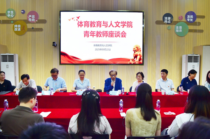 在体育教育与人文学院青年教师座谈会上,顾焕章教授以其丰富的人生经验,分享了65年教书育人心得体会。他鼓励青年教师做一个有信仰有目标有规划的人,积极适应时代发展,为教育事业奉献青春贡献力量。顾教授回顾了自己数十年来为人处事原则,希望大家工作生活中尽可能向高标准看齐,做到严于律己,宽以待人。青年教师要坚持学术追求,勇于创新,不断探索未知领域。在交流环节,青年教师积极提问,就课程思政等问题向顾教授请教。顾教授耐心解答,与现场老师共同探讨思想引领工作方法。体育教育与人文学院党总支书记卢奎主持座谈会,学院院长彭国强等院领导班子成员出席座谈会。