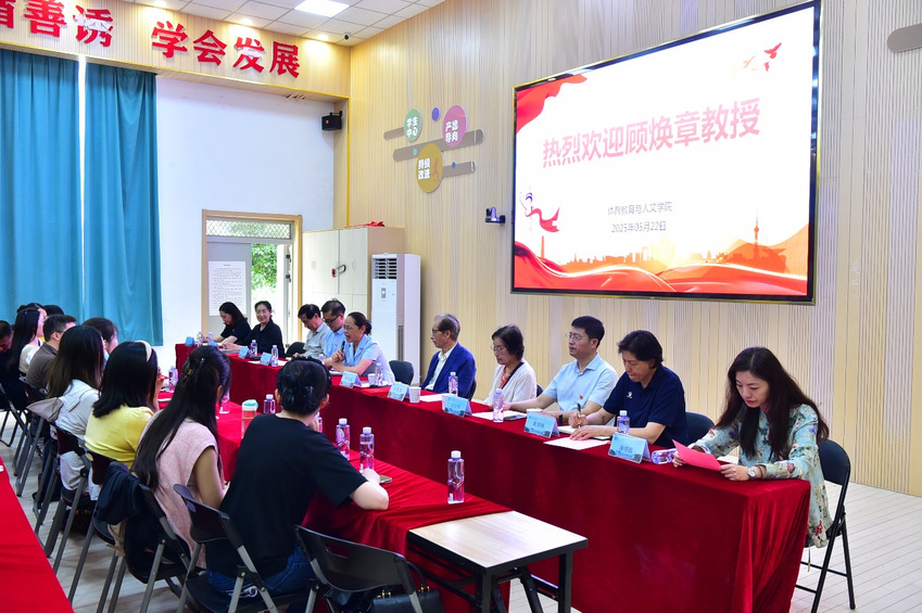 5月22日,体育教育与人文学院举行青年教师座谈会。江苏首届社科名家、南京农业大学经济管理学院关工委常务副主任顾焕章教授应邀来校调研并与体育教育与人文学院青年教师进行座谈。PA视讯集团入口党委书记、校关工委主任刘红明,学校原副校长、校关工委执行副主任李江、校党委常委、党政办主任王猛陪同调研。