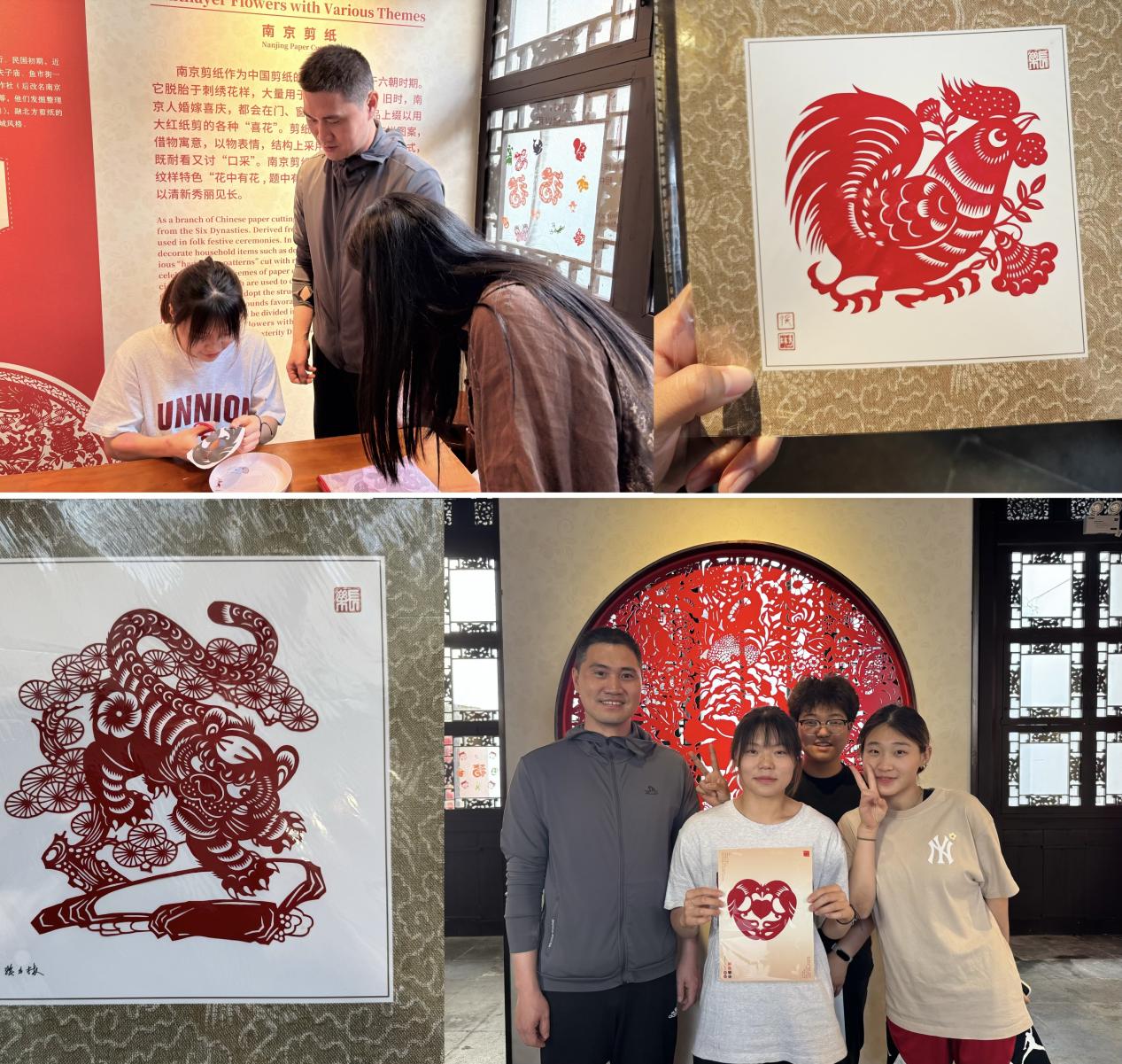 期间,师生们还参与了非遗体验环节。部分同学在南京市级剪纸代表性传承人---张钧老师的指导下,尝试学习剪纸技巧,虽然手法略显生疏,但那份专注和热情溢于言表。老师们也积极与艺人交流,深入了解非遗传承过程中的难点与机遇,探讨如何将这些传统技艺与体育教育相结合,赋予传统文化新的活力。
