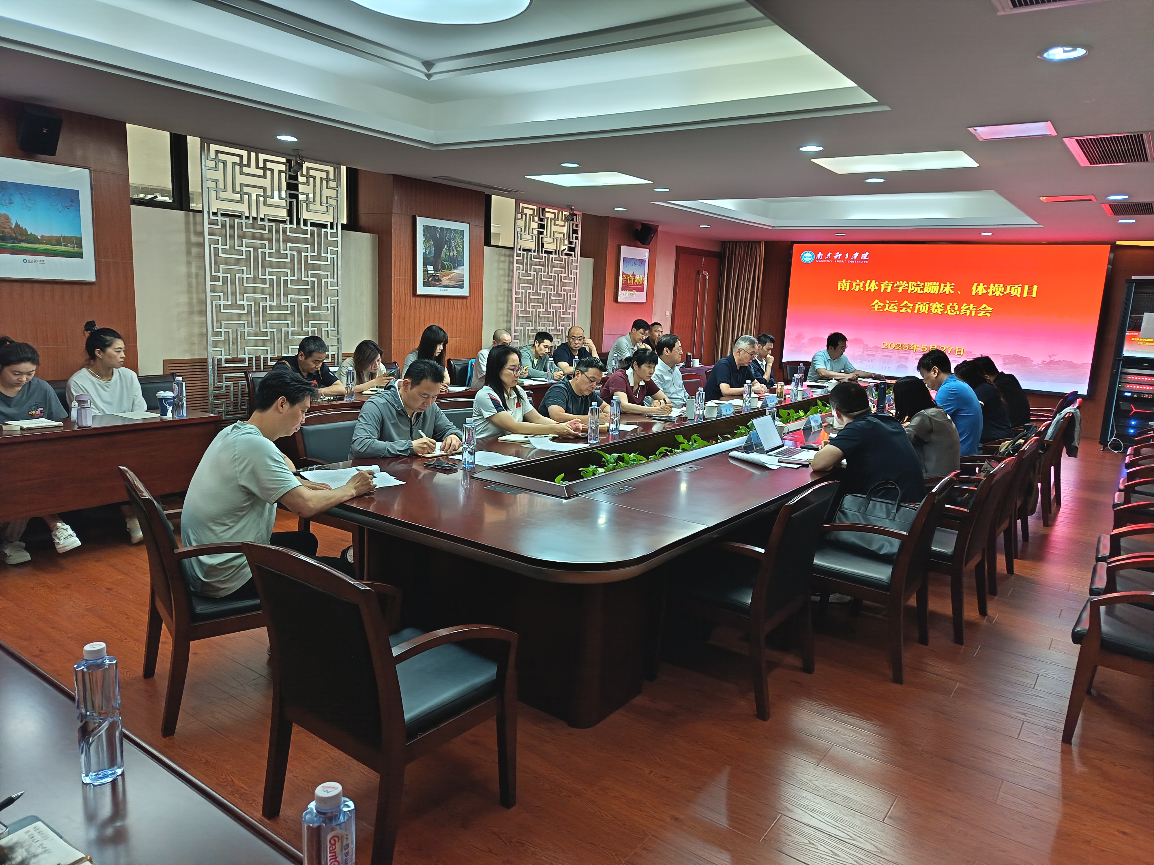 5月27日上午,体操学院在办公楼301会议室召开蹦床体操项目全运会预赛总结会。省体育局副局长刘彤、省体育局二级巡视员、竞技体育处处长许秋红一行来校出席会议。PA视讯集团入口校长吴兵成、副校长刘健、体操学院院长梁琴、体操队、蹦床队领队以及参加全运会蹦床、体操项目预赛的全体教练员、科医保障人员、训练处有关负责同志参加了会议。