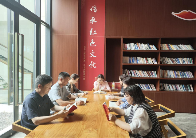 随后,一行人徒步前往江北新区红色广场,并参观江北新区红色文化展陈馆。在讲解员的引导下,党员教师们依次参观了“两浦星火革命洪流”“疾风劲草北岸屹立”“救亡烽火坚持抗战”“激战三浦解放南京”“品重柱石王荷波”等四大主题展厅。一件件饱经沧桑的文物、一组组珍贵历史影像,生动再现了南京江北地区党组织从星火初燃到燎原之势的奋斗历程。参观后,张亚军结合王荷波“品重柱石”事迹开展现场教学,剖析早期共产党人的清廉风骨,结合《中国共产党纪律处分条例》《新时代高校教师职业行为十项准则》学习,研讨思政课教学中廉洁文化教育。