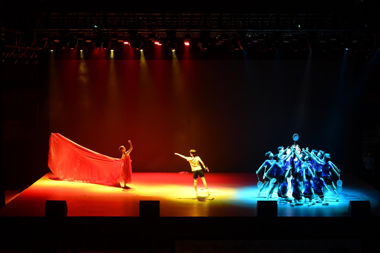 展演分为三个篇章,勾勒了武术与艺术学院的育人脉络。首章《筑基・艺启新程》通过《龙腾狮跃》《扇韵江南》等节目呈现了学院“重基础、强实践”课程体系的教学成果,三大专业以课程为舟、以基础为桨,让扎实的专业根基成为学生终身发展的动力源泉。次章“磨砺・艺境初成”通过《街舞新世纪》《电波》等节目展现学院创建的“学、研、创、演”教学形态中的学演成果,近五年学院依托学演体系培育了 120 余项体育竞赛金牌、4 项省级以上艺术展演金奖,培养了19名国家级运动健将与29名一级运动员。终章 “融创・艺体生辉” 以《那座桥》《羽动巅峰》等原创作品呈现学院“思政 + 体艺”的育人成效,每部原创作品既是“以体为骨、以艺为魂”的融合载体,也是“以文化人、以艺铸魂”的思政媒介。