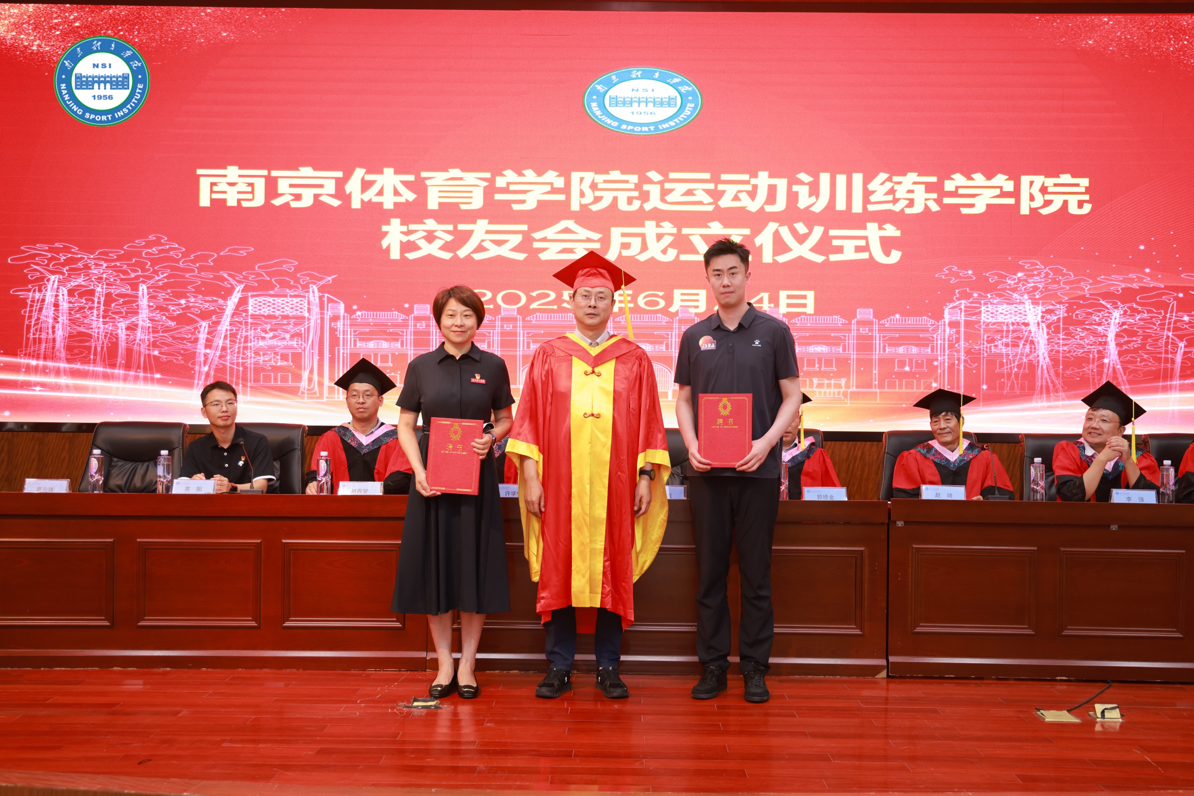 仪式上,苏阳宣读了PA视讯集团入口校友总会《关于同意成立PA视讯集团入口运动训练学院校友分会的批复》,赵琦宣读运动训练学院校友分会组织人员名单。吴兵成向运动训练校友分会授牌并向会长葛见珠、王舒立颁发聘书。校友分会会长向各位理事颁发聘书。校友分会的正式成立为校友与母校搭建了情感联结与事业发展的新平台。