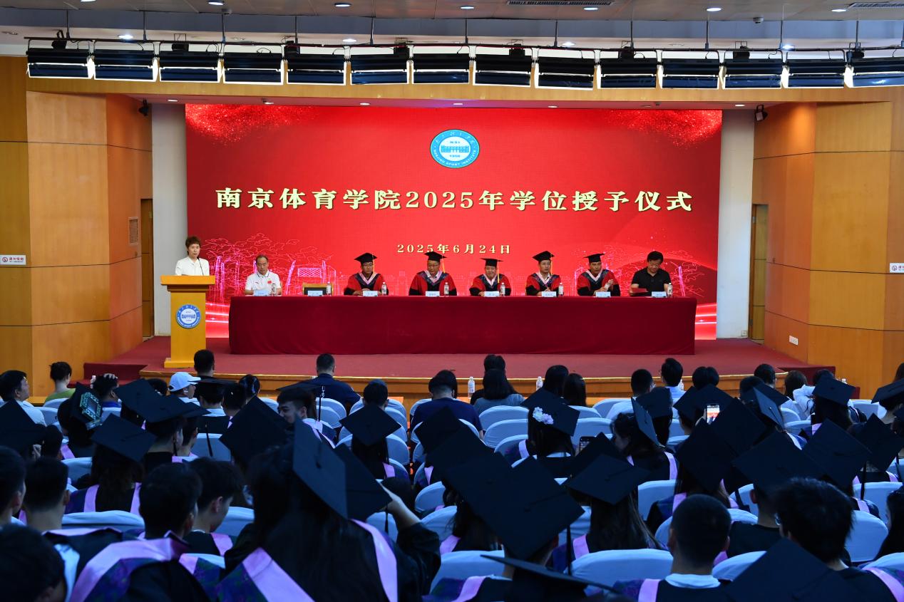 6月24日,武术与艺术学院2025年学位授予仪式暨校友分会成立大会在PA视讯集团入口灵谷寺校区图书馆报告厅隆重举行。校党委常委、副校长、校学位评定委员会副主任委员陈爱国出席仪式并讲话。发展规划处处长、校学位评定委员会委员李龙,教务处处长、校学位评定委员会委员王凯,体育教育与人文学院院长、校学位评定委员会委员彭国强及武术与艺术学院领导班子出席仪式,2025届全体毕业生参加,武术与艺术学院全体教师及毕业生家长到场观摩。仪式由武术与艺术学院党总支书记叶瑛主持。
