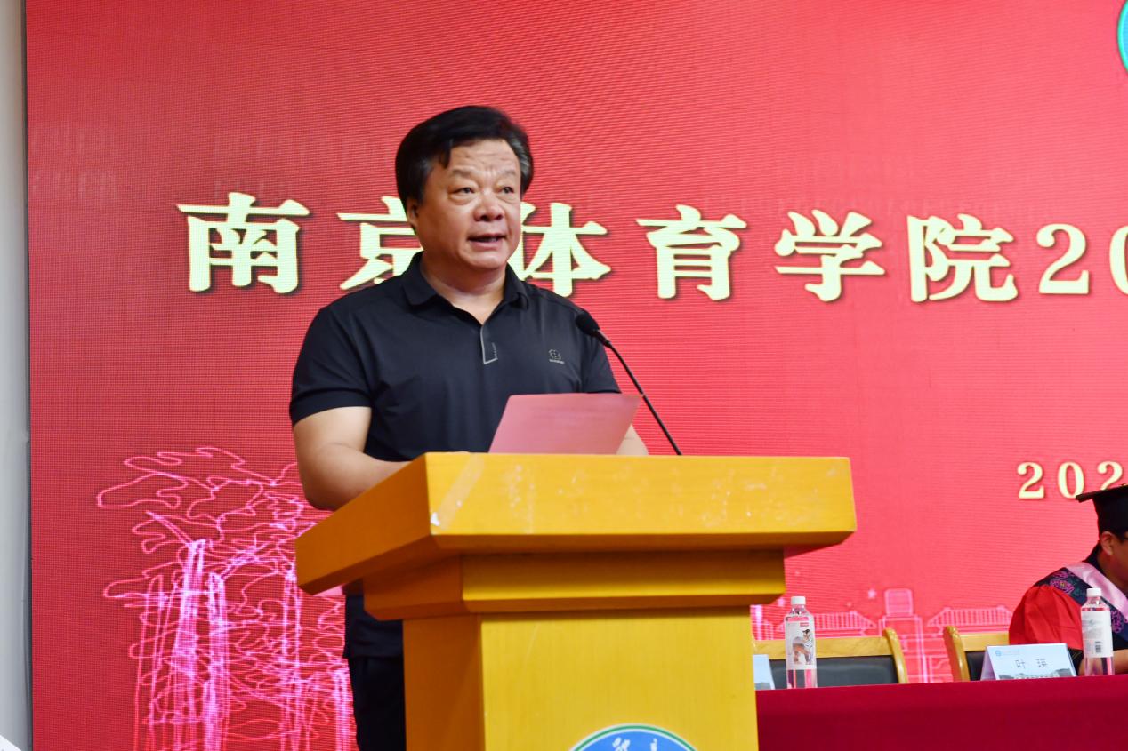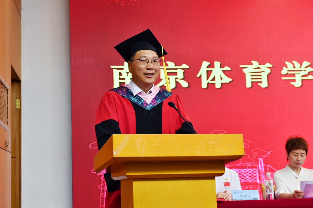 当学位帽的流苏从右拨至左,131 名学子的青春在此刻定格成奔赴未来的序章。党委常委、副校长陈爱国以“致用身体写诗的人”为题,为充满仪式感的青春盛典送上殷殷嘱托,他代表学校,向圆满完成学业的全体毕业生致以最热烈的祝贺,向含辛茹苦的父母、诲人不倦的师长,以及所有浇灌这场青春绽放的人们,致以最崇高的敬意。他表示,武术与艺术学院的同学们在求学之旅中以身为笔,以汗为墨,在时光的宣纸上挥毫写就了最动人的诗行,临别之际,将赠以三点希望:一是持文化传承之火,希望同学们既做敦煌壁画中走来的飞天舞者,更当数字时代里新生的文化使者,让千年文脉在当代焕发灼灼光华;二是秉艺术求索之火,希望同学们继续追求艺术永恒的魂魄,在每一个不肯将就的当下勇毅前行;三是燃生命淬炼之火,希望同学们带着这份武术和艺术之心,在人生赛场上永远以"白鹤亮翅"的从容笑对风云。