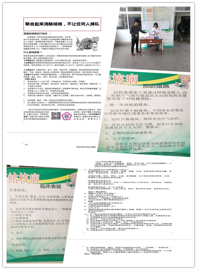 2017年3月24日是第22个“世界防治结核病日”,今年的宣传主题是“社会共同努力,消除结核危害”。为让更多的大学生了解结核病和其它常见春季传染病的防治知识,校医院紧紧围绕这一主题,于3月29日中午在校内得开展了结核病及其它常见春季传染病防治宣传教育活动。
