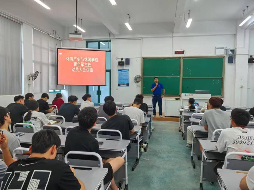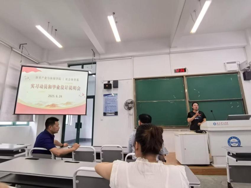 为切实做好社会体育系学生实习工作,保障毕业设计高质量完成,2025年6月24日,体育产业与休闲学院社会体育系在仙林校区召开2022级学生实习暨毕业论文选题动员大会。院长郭修金、系主任曹全军、系副主任周晶、相关实习带队老师、论文指导老师以及全体学生参加会议。会议由周晶主持。