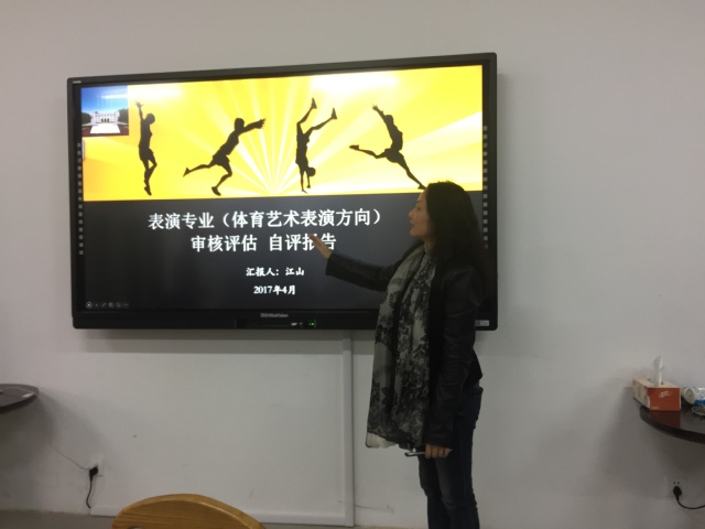 表演专业负责人江山做自评报告,根据我院本科专业评估指标体系,从目标与定位、师资队伍、教学资源、培养过程、教学管理与质量保障、人才培养质量以及专业特色七大方面对表演专业(体育艺术表演方向)自评工作情况进行了全面综合的汇报,并对存在的问题提出了建议和整改措施。