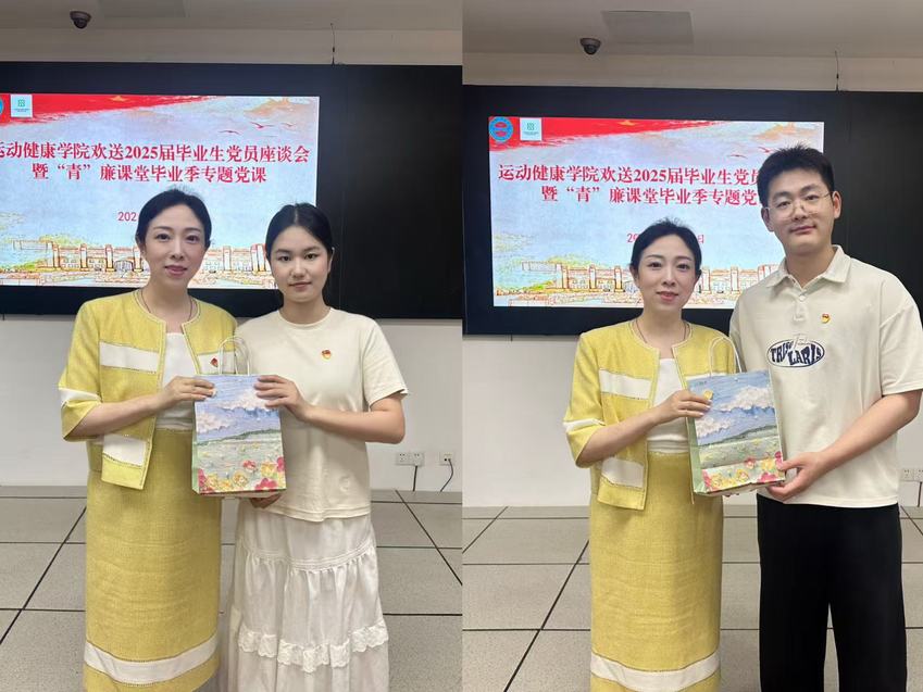 为引导毕业生党员坚定理想信念,强化廉洁自律意识,6月24日下午,运动健康学院在图书馆第二报告厅召开2025届毕业生党员座谈会暨“青”廉课堂毕业季专题党课。会议由运动健康学院党总支书记阚妮妮主持。