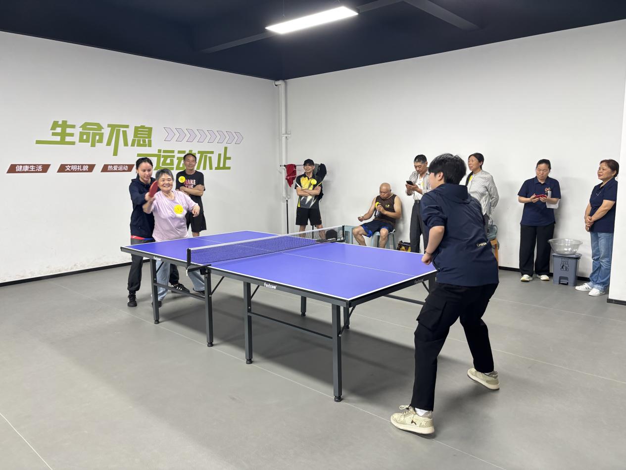活动现场,江苏省乒乓球队的专业运动员们首先带来了精彩的乒乓球技巧展示,敏捷的身手、精准的击球,赢得了现场观众阵阵喝彩。随后,运动员们开展了一对一的指导教学,从握拍姿势、发球技巧到基本的步伐移动,都进行了细致讲解和示范,耐心纠正居民们的动作。居民们踊跃参与,积极地与运动员们切磋,努力展现自己的球技,在与专业运动员的交流中,体会到了乒乓球运动的魅力。国家体育总局人力中心代表现场观摩了活动开展过程,对承办场地普斯康健居家养老服务中心的居家养老、健康管理、文化娱乐、体育健身等功能进行了了解,详细询问了优秀运动队资源下沉社区、服务基层群众的具体实践与经验做法,围绕“双进”工作的组织运行机制、服务项目内容、多元合作模式、配套资源需求以及实际成效评估等核心议题和各方进行了深入交流与探讨。