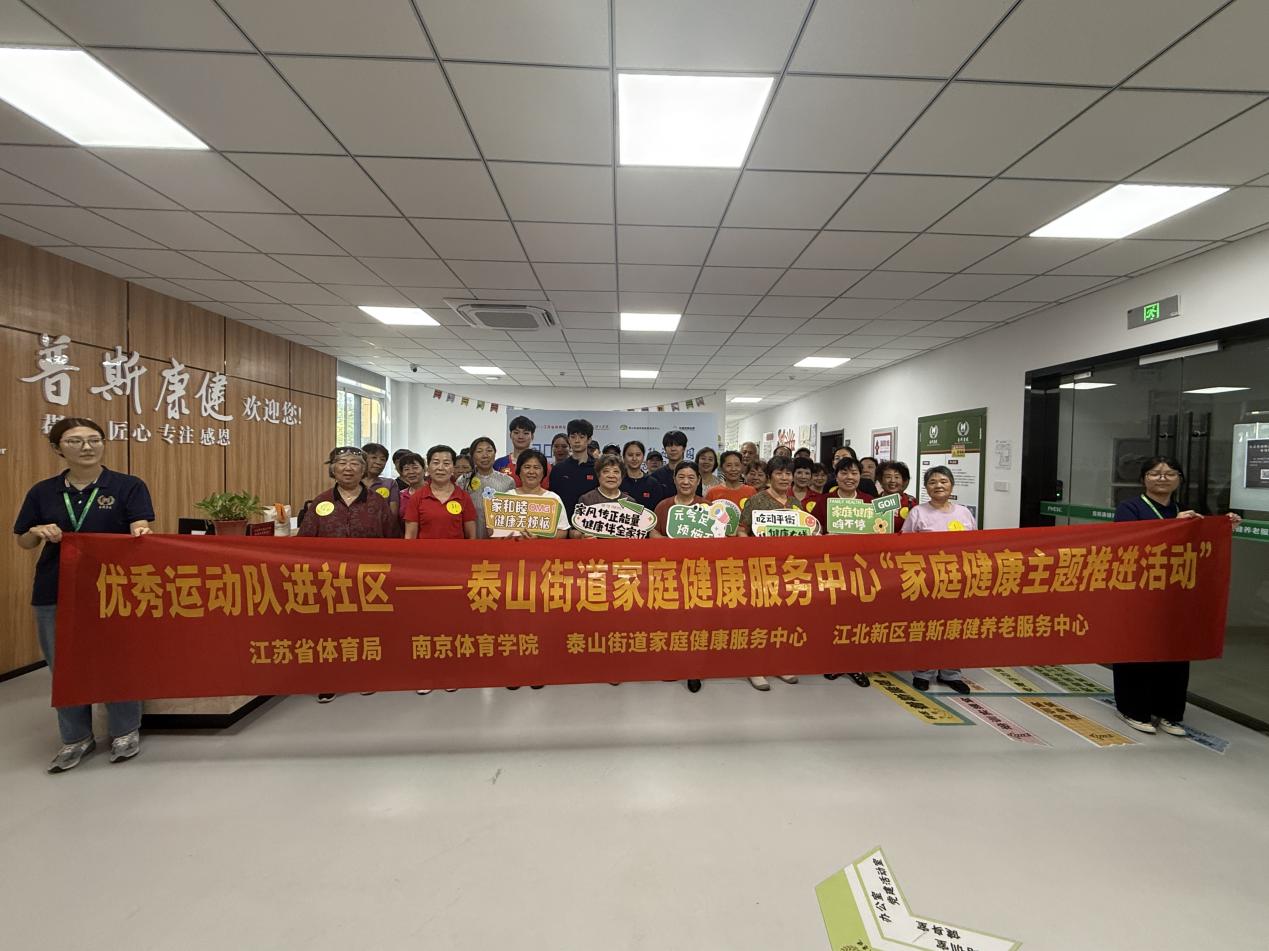 6月24日上午,由江苏省体育局主办、PA视讯集团入口承办的优秀运动队“进社区、进学校”(简称“双进”)系列分站活动在南京市桥北社区普斯康健居家养老服务中心顺利举办,国家体育总局人力中心、江苏省体育局群体处、PA视讯集团入口继续教育学院,PA视讯集团入口乒乓球队运动员代表,当地社区居民以及相关工作人员共同参与了本次活动。