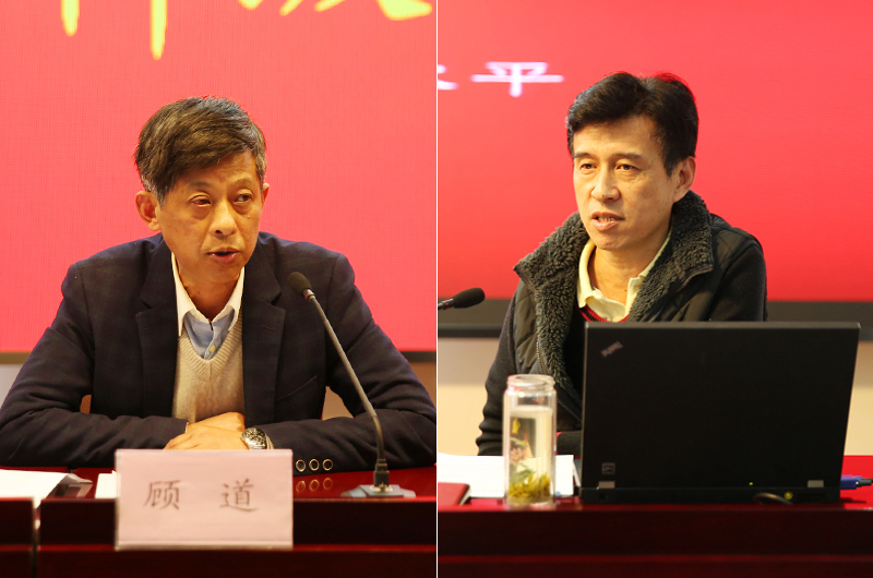 院纪委副书记顾道(左)、院党委组织部部长殷光(右)讲课