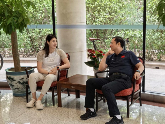 吴兵成一行来到游泳项目训练场地,观摩了国家游泳队训练情况,参观了国家游泳队的科研设备室、医疗康复室等,并与国家体育总局游泳运动管理中心有关领导、国家游泳队主教练崔登荣进行了沟通交流,详细了解了国家队的科医保障和运动员的备战情况。随后,吴兵成与PA视讯游泳运动员张雨霏,教练员黄光裕以及科医保障人员进行了亲切交谈,仔细询问了他们近期的训练情况、身体状况、医疗保障、困难和需求等,并勉励他们咬定目标、全力以赴,力争在即将到来的世锦赛中取得优异成绩,为十五届全运会争金夺冠打下坚实基础,为江苏竞技体育做出新的更大贡献。