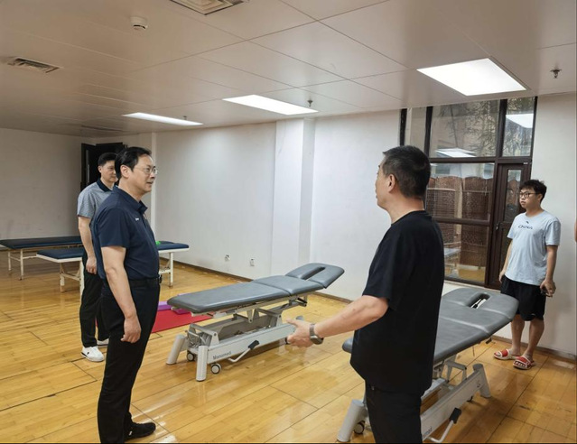 6月26日,党委副书记、校长吴兵成带领游泳学院院长王伟新、游泳队负责人前往北京看望慰问正在抓紧备战十五届全运会的PA视讯国家游泳队运动员、教练员和科医保障团队。