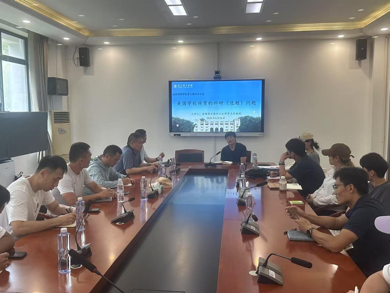 为营造良好的学术研究氛围,构建国际化、积极向上的科研环境,开阔研究视野,提高师生学术素养,提升科研创新能力,运动训练学院于2025年6月26日下午在仙林教学楼A105举办学术沙龙活动。活动特邀美国体育科学学院院士、俄亥俄州立大学终身教授李卫东博士为主讲嘉宾,部分教师代表、研究生和卓越班学生参加本次沙龙。运动训练学院院长赵琦教授致辞,活动由牛森教授主持。