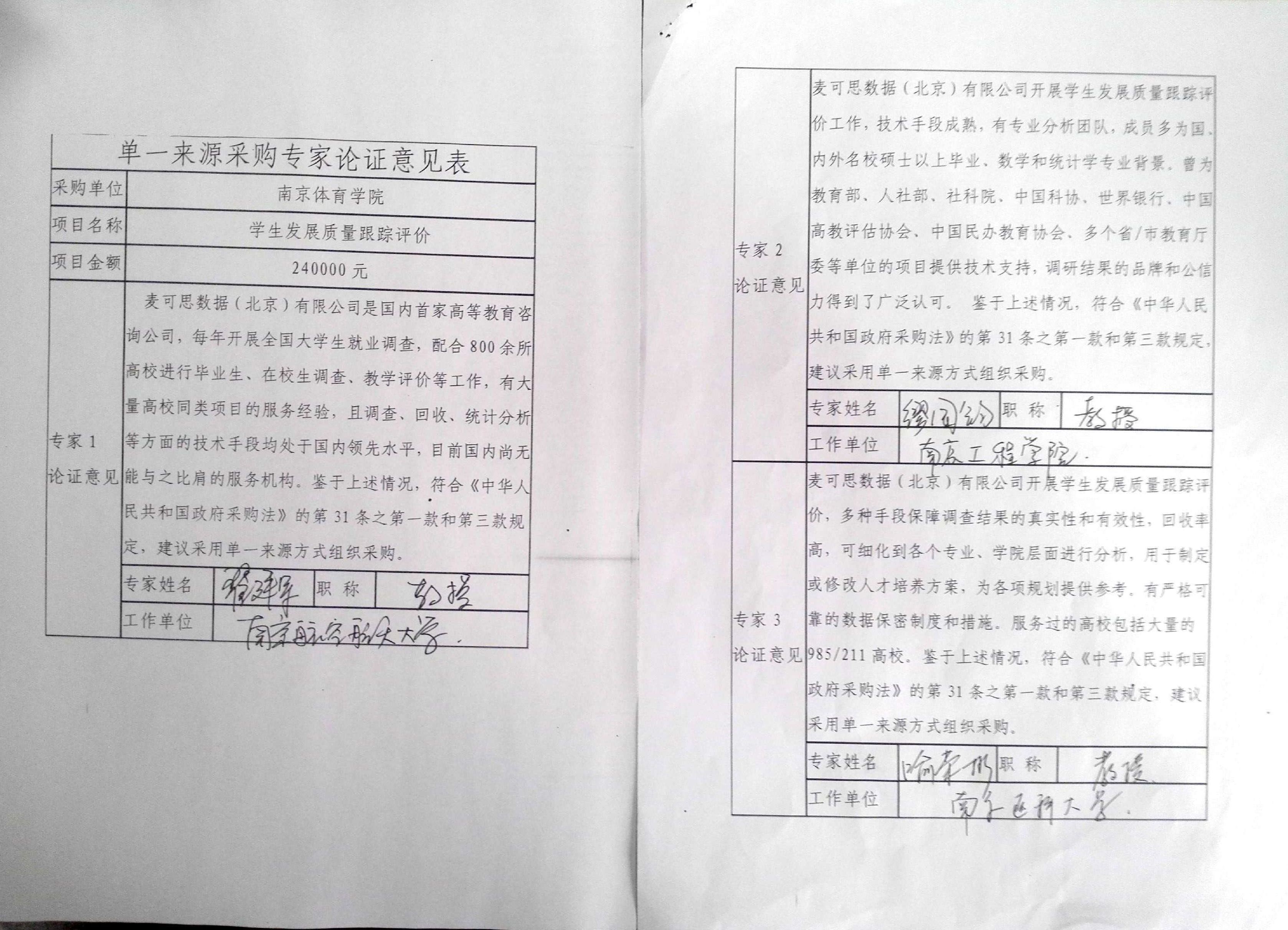 经专家评估论证(专家论证意见详见附件),麦克思数据(北京)有限公司是国内首家高等教育咨询公司,为教育部、人社部、社科院、中国科协、世界银行、中国高教评估协会、中国民办教育协会、多个省/市教育厅委等单位的项目提供技术支持,调研结果的品牌和公信力得到了广泛认可。每年配合包括一些985/211高校在内的800余所高校进行毕业生、在校生调查、教学评价等工作,有大量高校同类项目的服务经验,且调查、回收、统计分析等方面的技术手段均处于国内领先水平,目前国内尚无与之比肩的服务机构。鉴于上述情况,将采用单一来源方式组织采购。