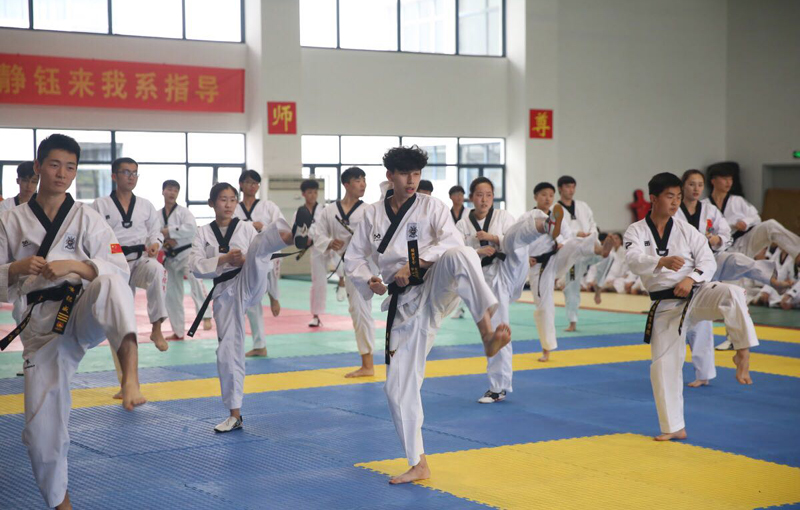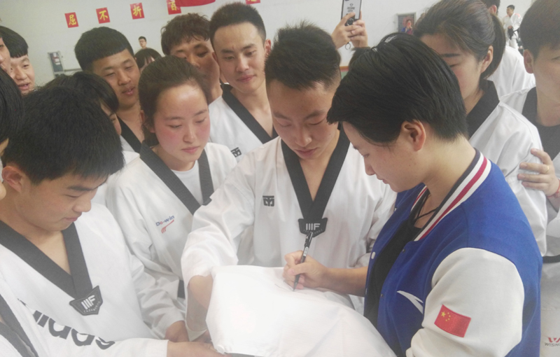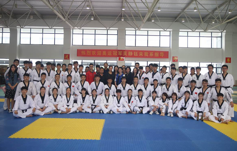 跆拳道奥运冠军吴静钰来院指导运动系学生跆拳道训练