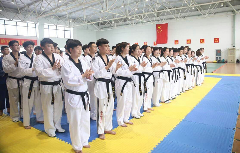 院图文信息中心主持工作的副主任葛见珠、运动系副主任张明、运动系办公室主任江秋寒以及跆拳道专业老师孙尊航等老师和学生代表们一起参加了活动。