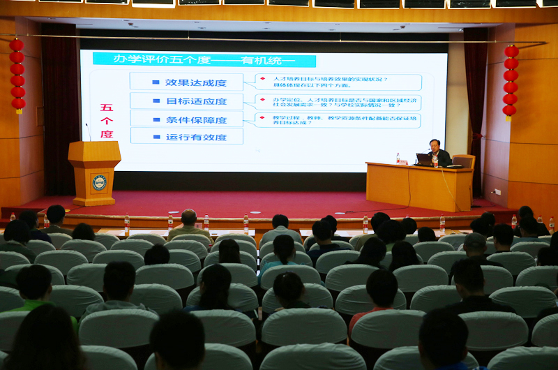 大会第一阶段,副院长史国生作《本科教学工作审核评估的内涵与实施》培训报告,从评估框架、要素释义、实施过程三个方面,对本科教学工作审核评估范围中的审核项目、要素和要点等内容进行了深入分析与解释。教务处处长严海平解读我院本科教学审核评估评建工作细化方案,布置开展“课堂开放月”等专项工作。