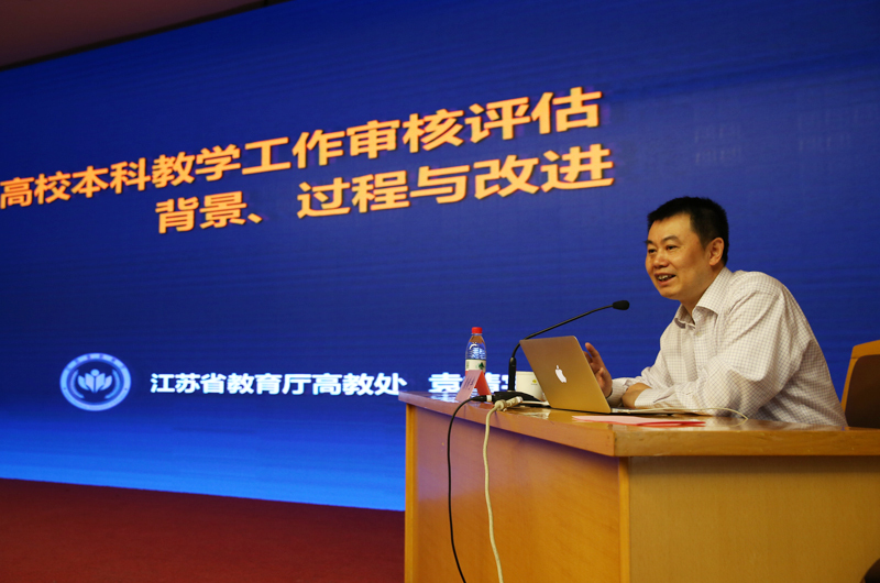 大会第二阶段,省教育厅高教处处长袁靖宇作《高校本科教学工作审核评估背景、过程与改进》培训报告,从审核评估的背景、设计思想及价值实现三个方面,介绍了中央政府、省政府在高等教育系统实施的重大政策,回顾了江苏高等教育二十年发展所经历的不同阶段,分析了中国高等教育本科评估的发展历程,指出新一轮“审核评估”的特点,提出迎评重点是要与深化教学改革相结合,要动员全校力量,增强机遇意识,减少“麻烦”心理,保持“平常心、学习心,正常态、开放态”。