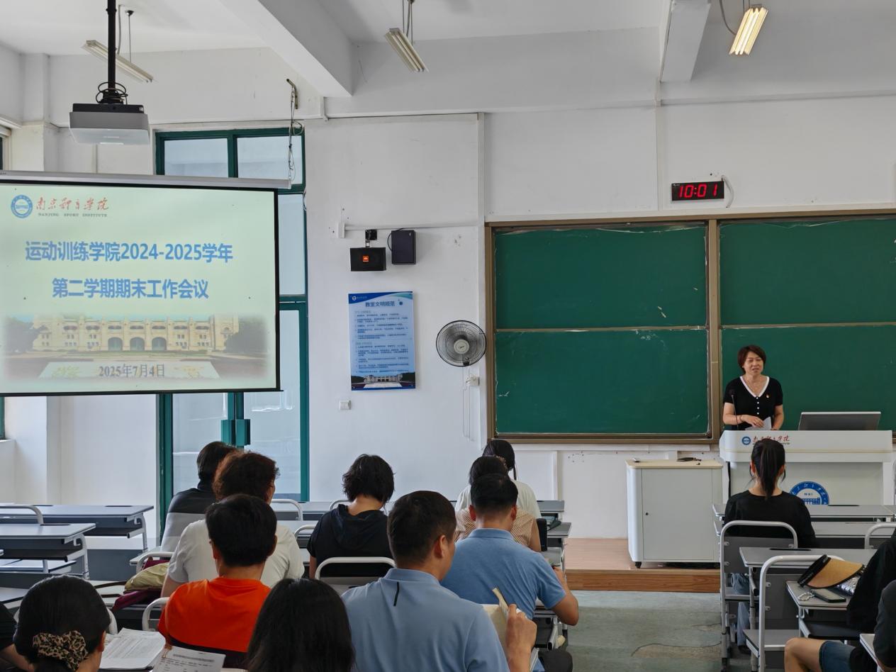 7月4日,运动训练学院2024-2025学年第二学期期末工作会在仙林校区C301教室召开。会议由院长赵琦主持,运动训练学院党总支书记葛见珠、副书记沈灵知及全体教师参加了此次会议。