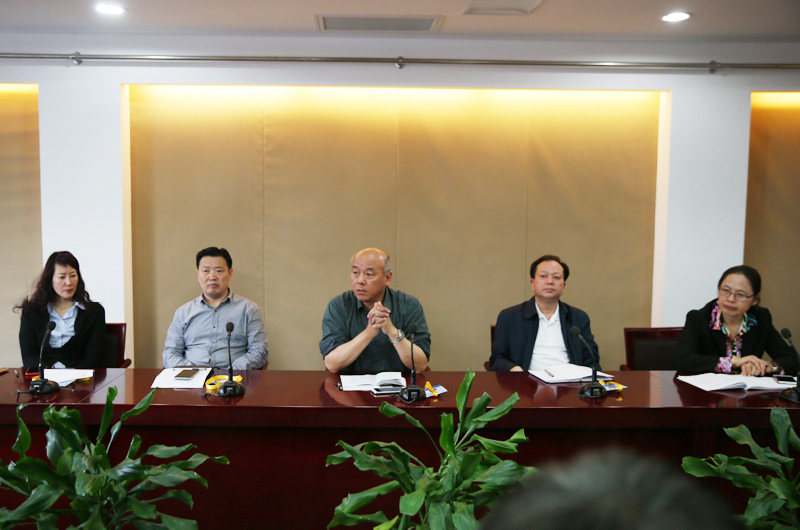 出席会议的院领导,左起依次为:肖爱华、金松、汤岩、史国生、李江