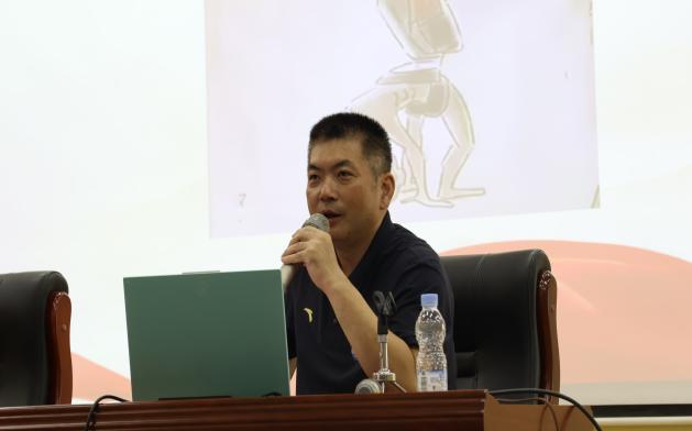 活动伊始,刘峰以通俗易懂的方式,为在场的同学们详细剖析了技巧与杂技的区别。他细致地讲解了技巧运动的起源和发展历程,并着重强调了该项目在国际体育赛事中所占据的重要地位。通过男子四人平衡套的比赛视频,向同学们呈现了技巧的难度与精妙之处,让大家直观感受到技巧运动的魅力与挑战性。