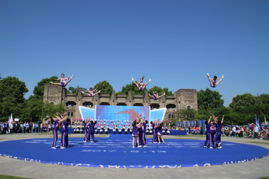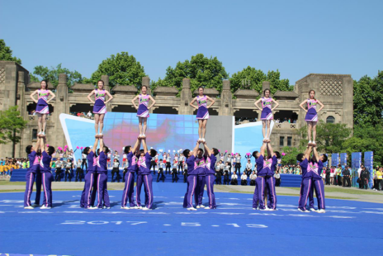 5月13日,首届玄武区春季运动会在我院中央体育场拉开了帷幕,院长杨国庆出席了运动会开幕式。我院技巧啦啦队在开幕式上用矫健的身手、敏捷熟练的动作、魅力四射的表现力,赢得了现场观众一阵阵惊呼。大家不由自主为他们的高超技艺竖起了大拇指,队员们用他们的精彩表演点燃了现场热烈的气氛。