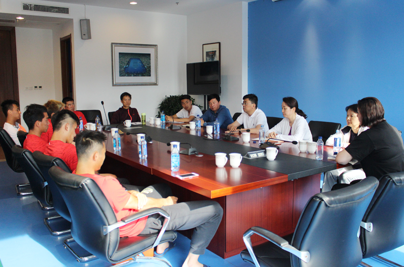 出席会议的院领导及中国网球学院有关负责同志,左起依次为:曾少昡、蒋宏伟、杨国庆、鲍勤