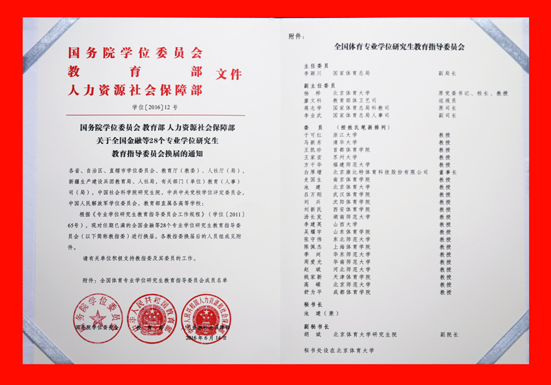 5月25日,在北京体育大学召开了全国体育专业学位研究生教育指导委员会换届大会,国家体育总局副局长李颖川、国务院学位委员会副主任黄宝印到会讲话。会上发布了国务院学位委员会、教育部、人力资源社会保障部联合发布的《关于全国金融等28个专业学位研究生教育指导委员会换届的通知》。根据《通知》精神,我院副院长史国生教授受聘为全国体育专业学位研究生教育指导委员会委员。