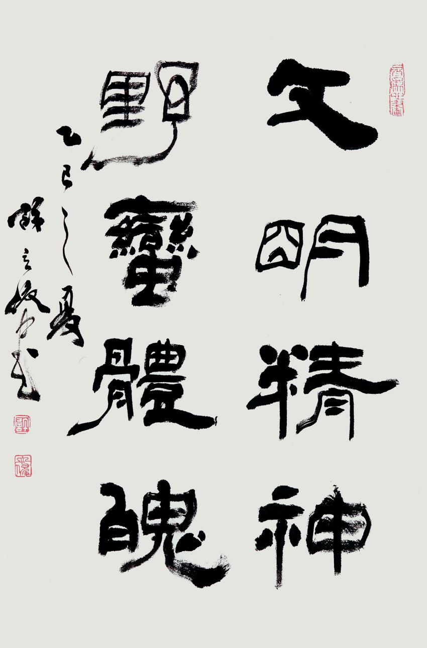 隶书 文明精神 野蛮体魄 70cm-46cm