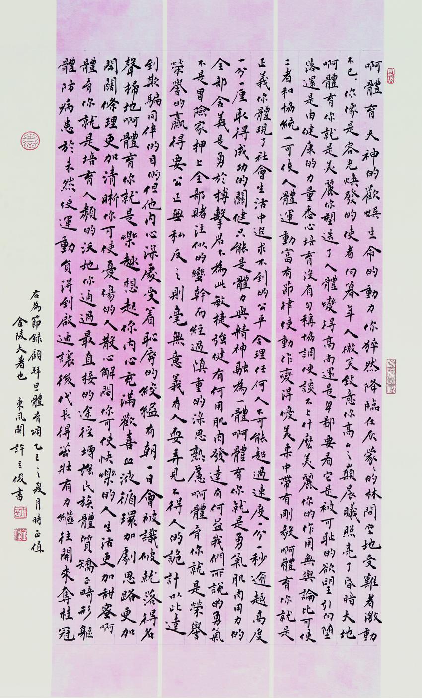 小楷 体育代表着青春、健康、活力,关乎人民幸福,关乎民族未来 70cm-46cm