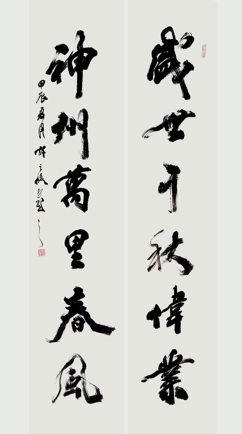 行书 盛世千秋伟业 神州万里春风 180cm-35cmx2